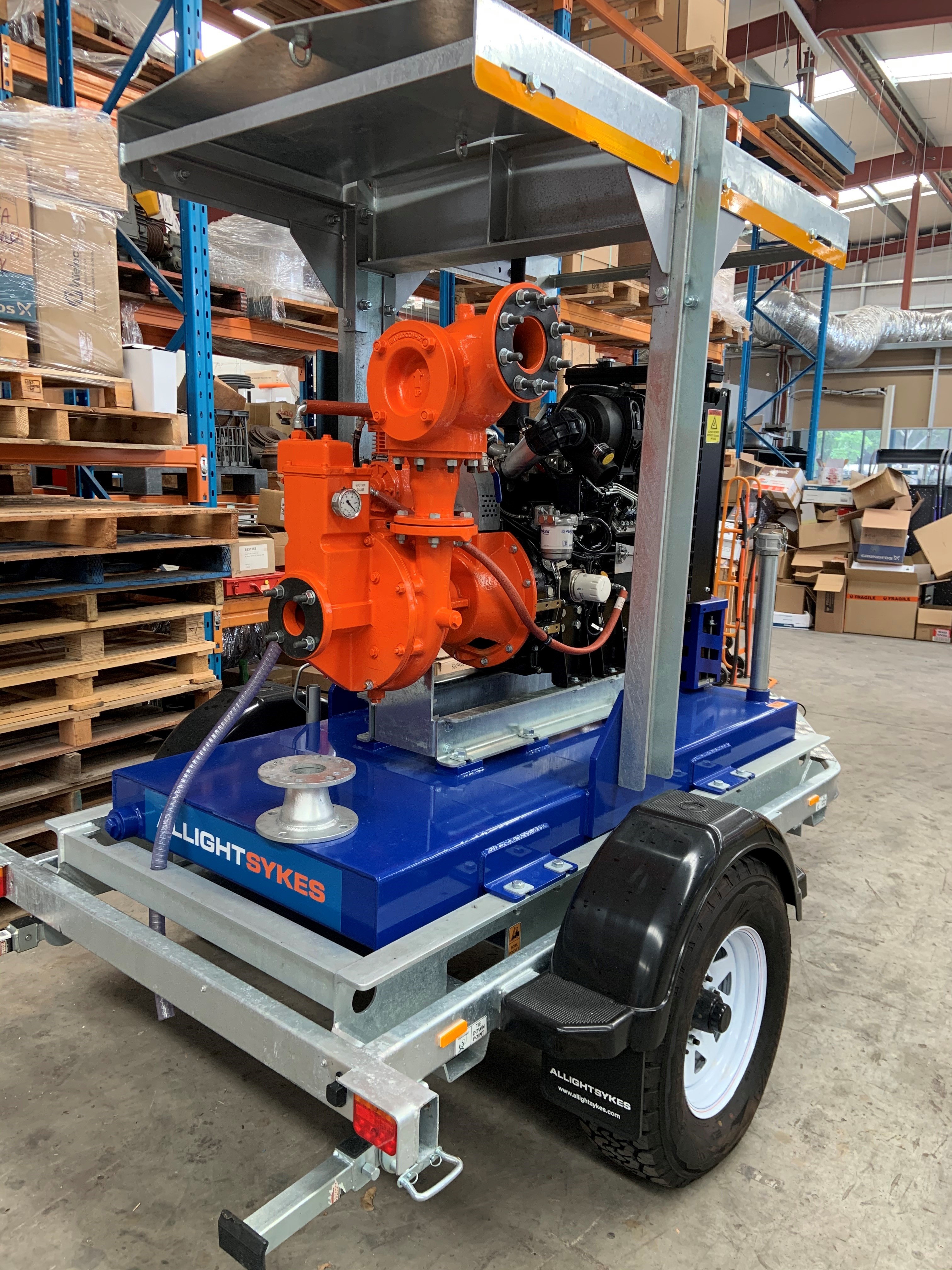 skid mounted trash pumps powered by up to 80 horse power Deutz Diesel engine capable of flows up to 6000 litres per minute and solids of up to 76mm. Ideal for dewatering , slurry and sewerage transfer , flood mitigation etc. self primes from a depth of up to 7m